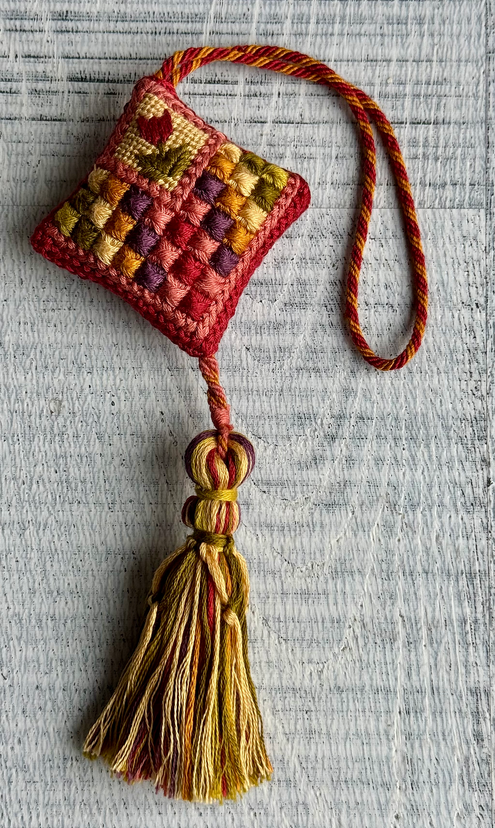 Scissor Keeper Needlework3. Jan.1 Min. LesezeitNoch einmal ein kleiner Scherenanhänger in einer Straminstickerei mit einer kleinen Quaste als Anhänger.Die Stickerei vor der Verarbeitung:Und eine Fotocollage:
